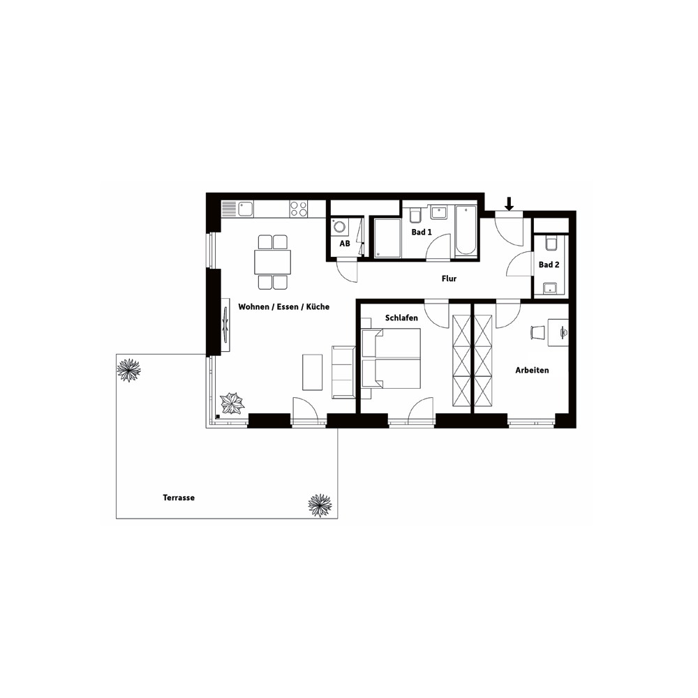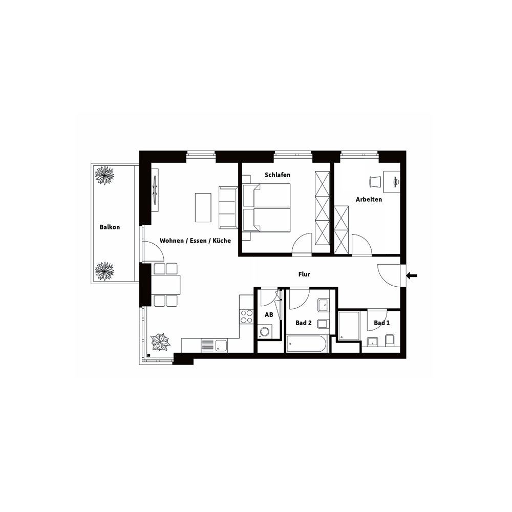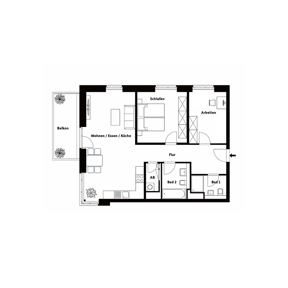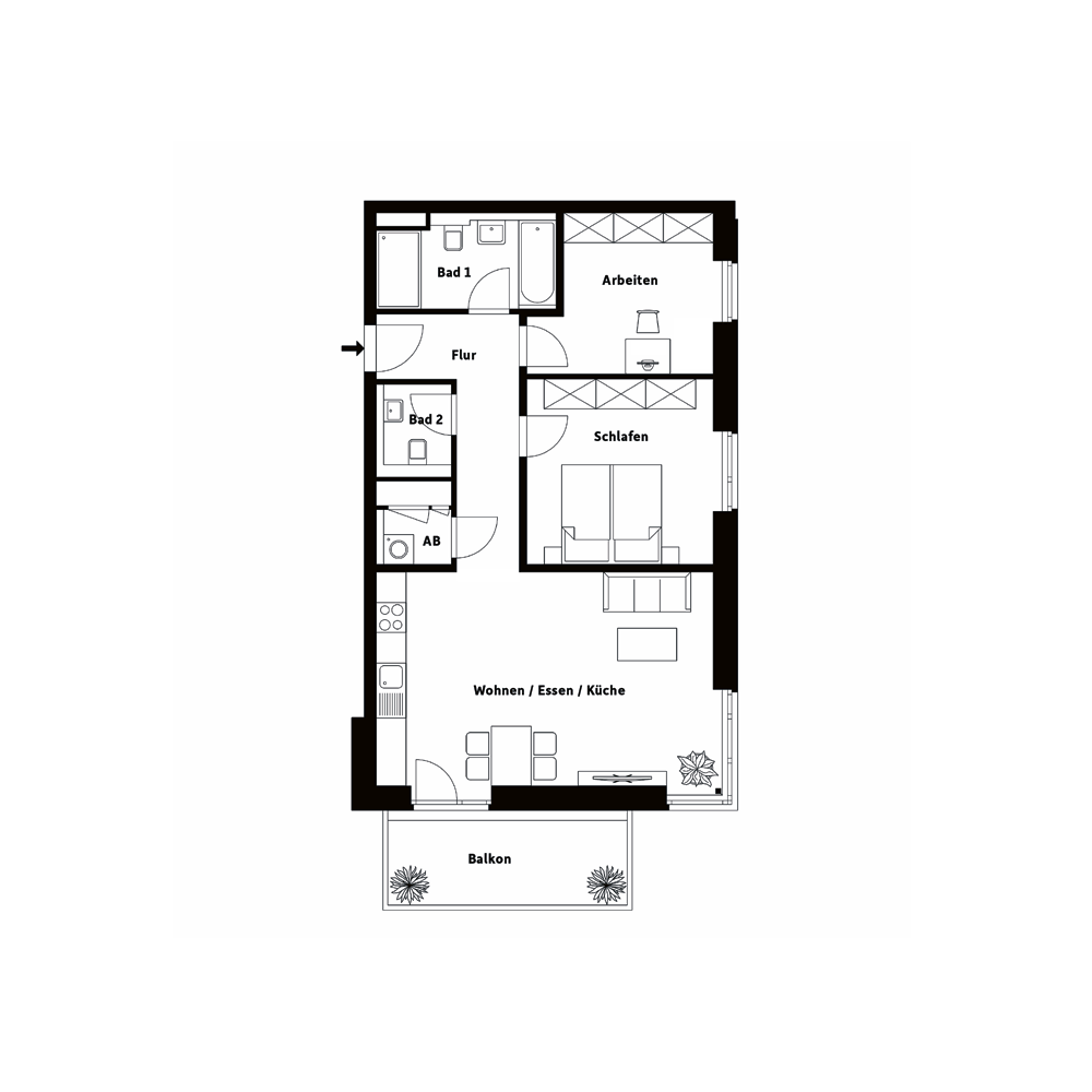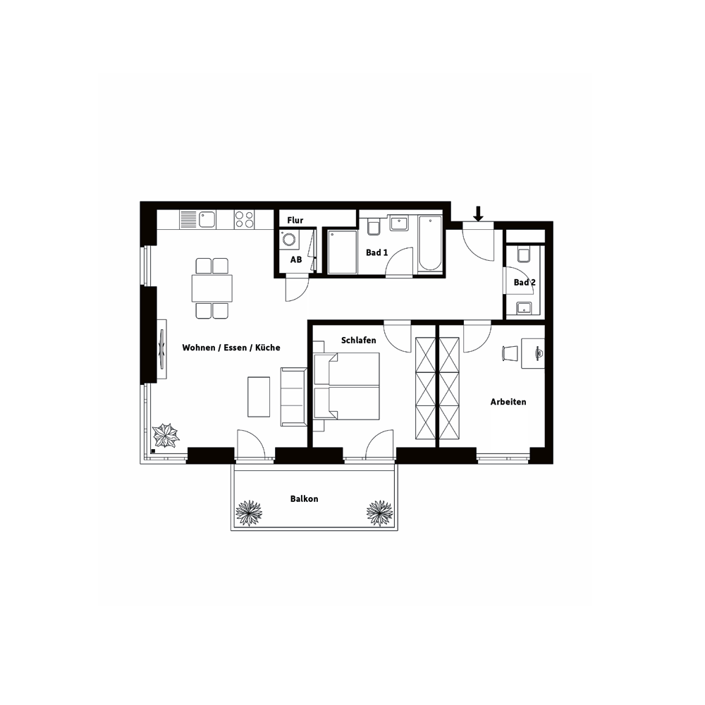 2 Zimmer, ca. 66,40 m² Wohnfläche