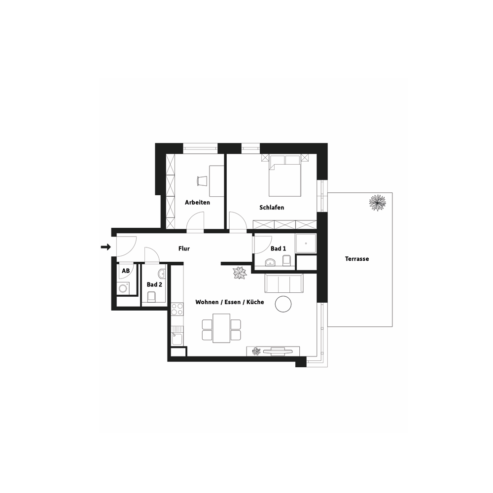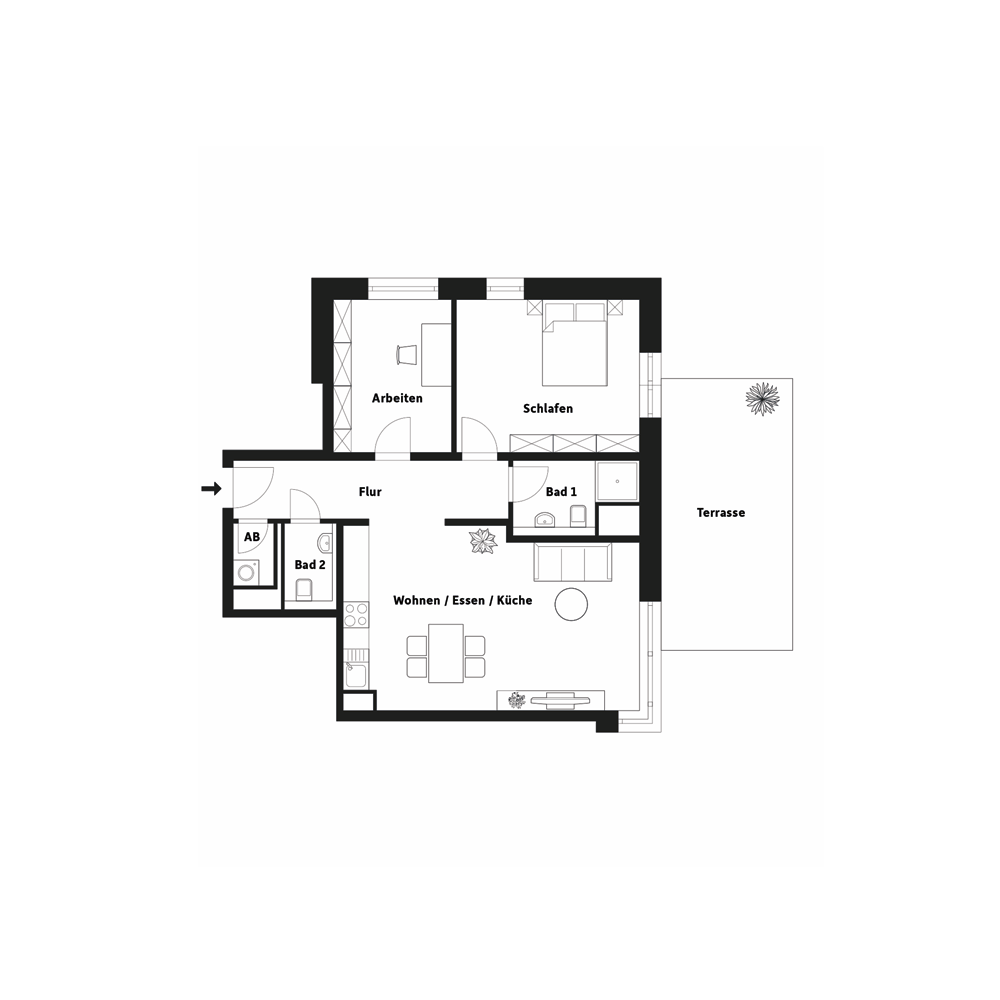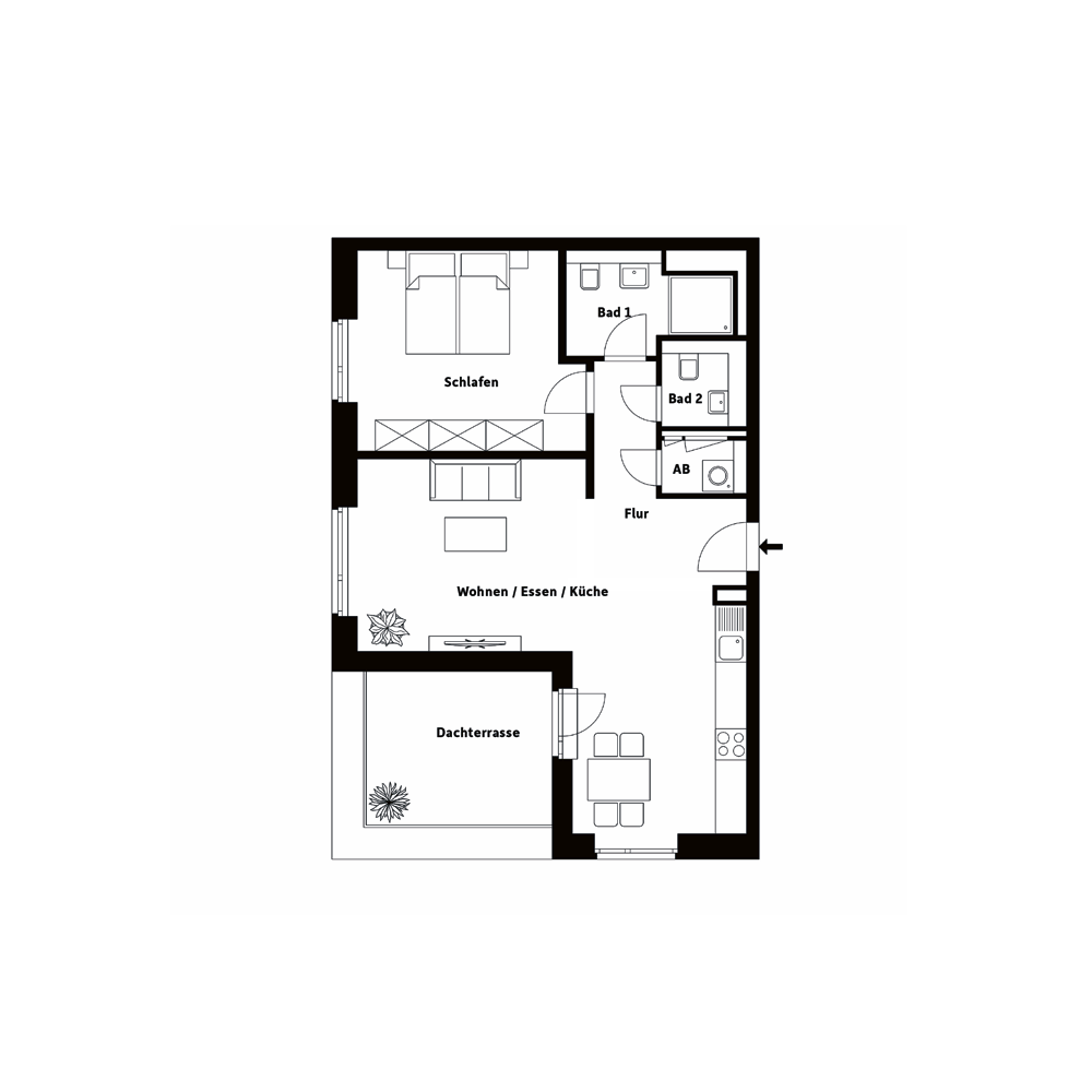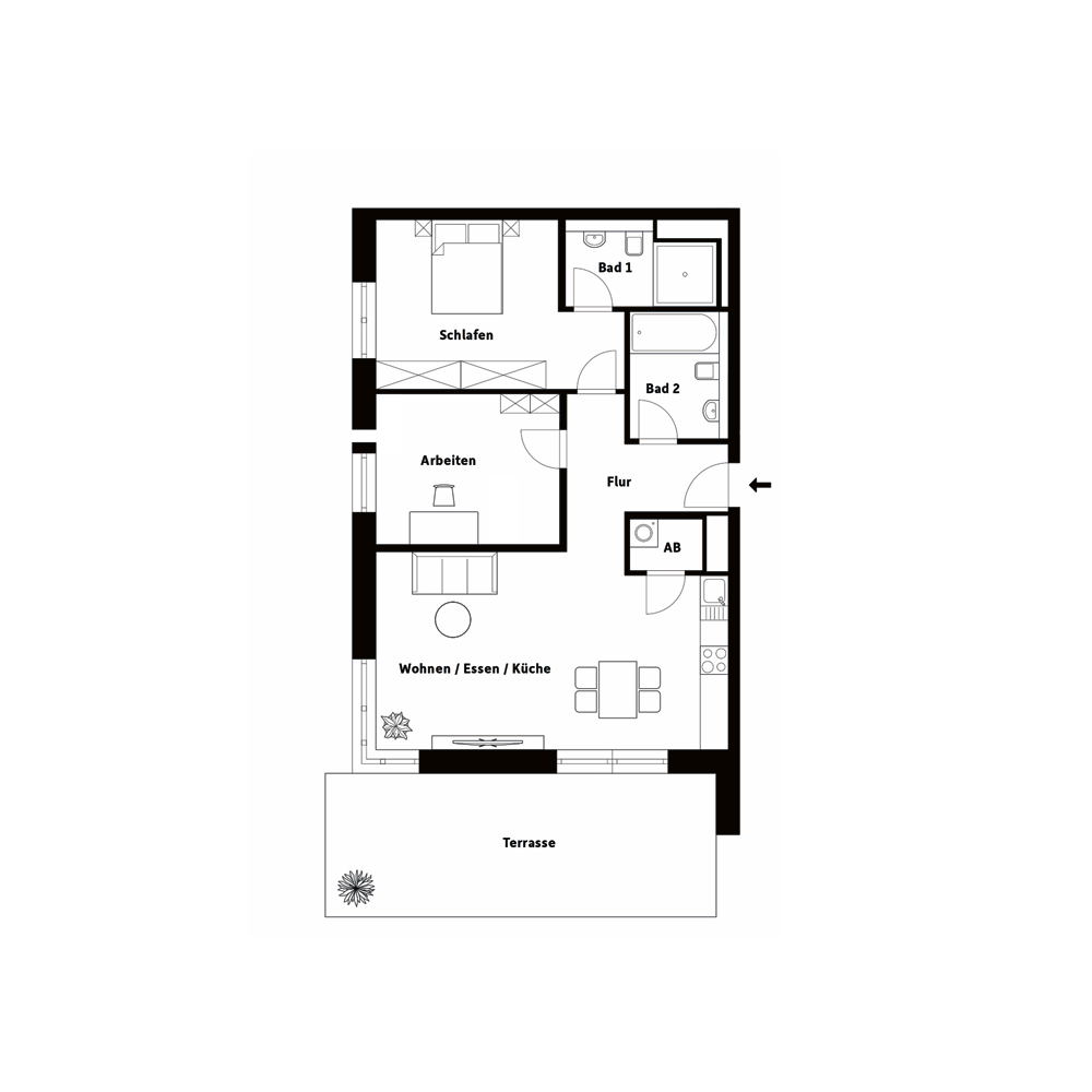 2 Zimmer, ca. 66,40 m² Wohnfläche