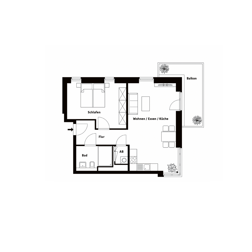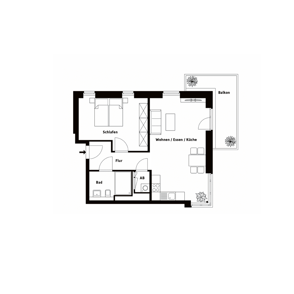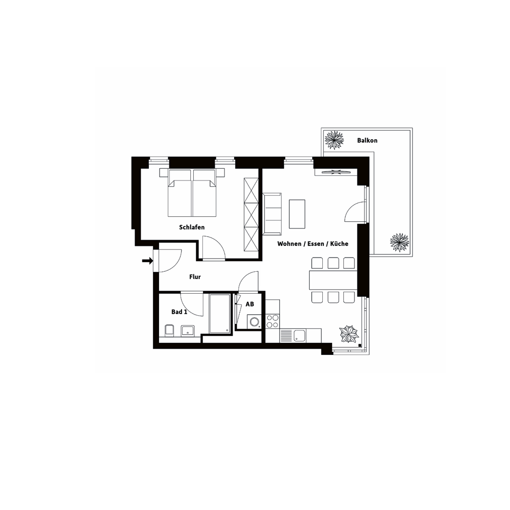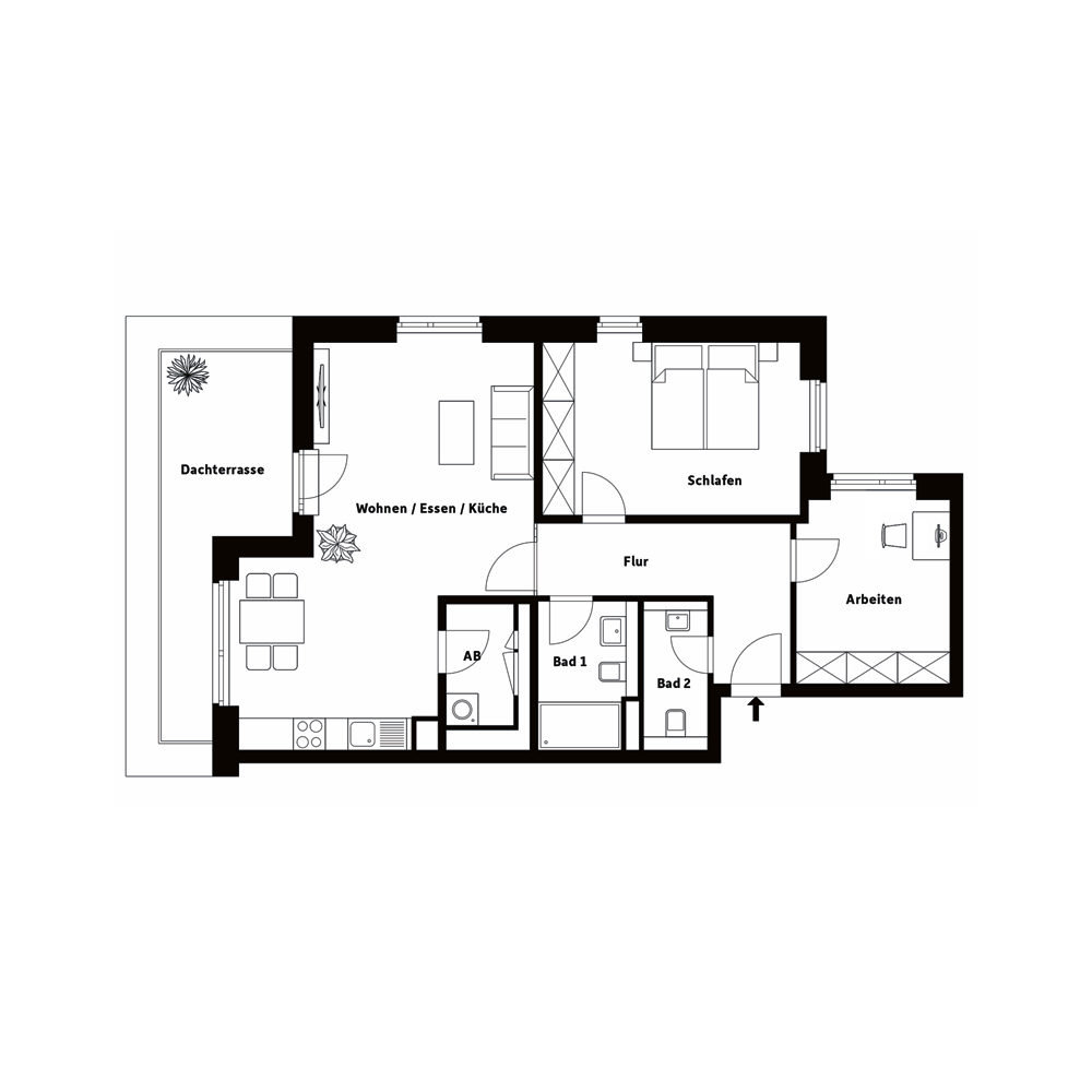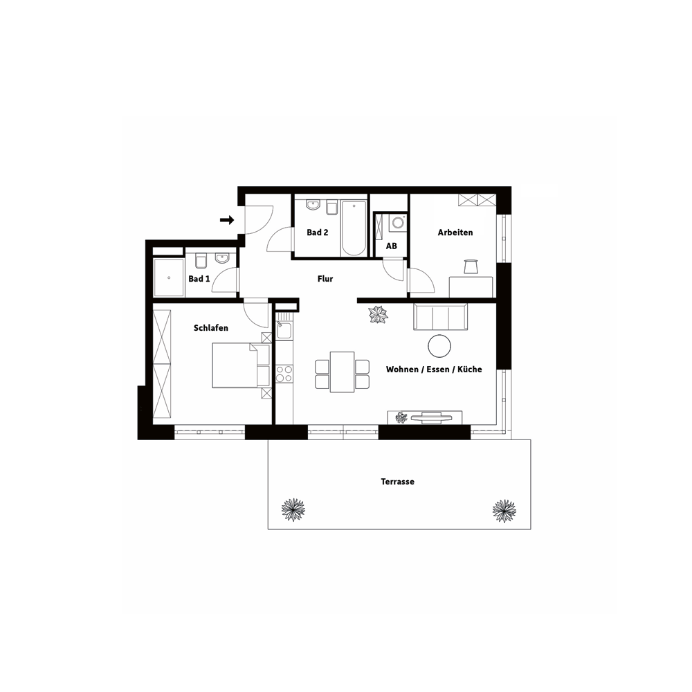 2 Zimmer, ca. 66,40 m² Wohnfläche