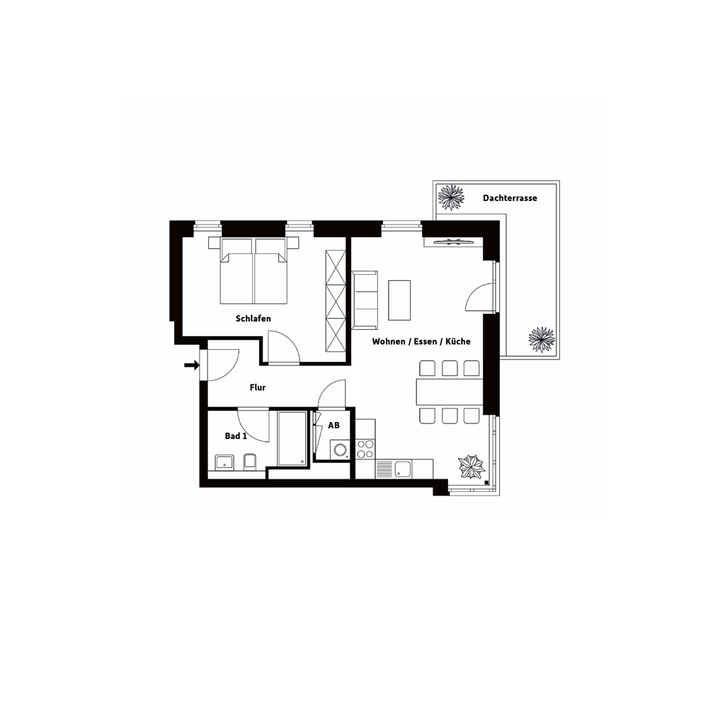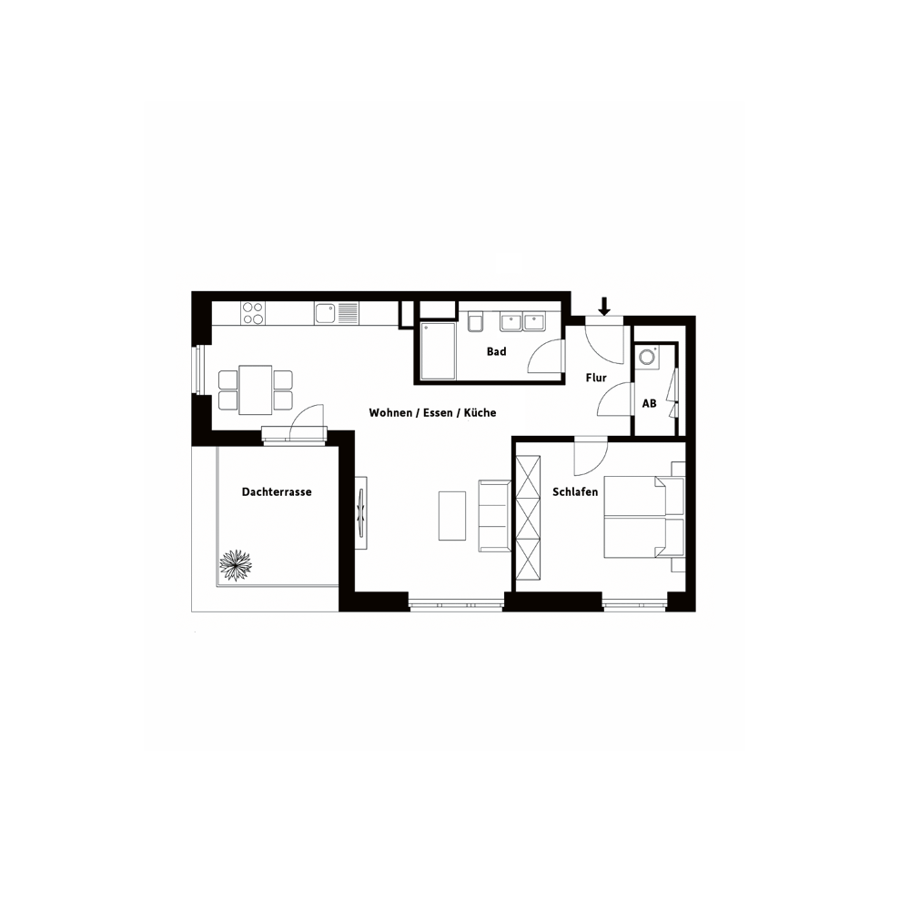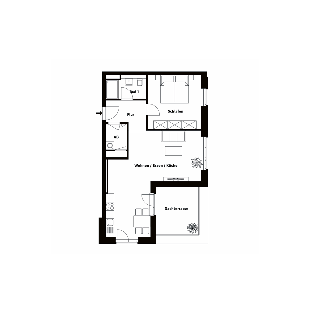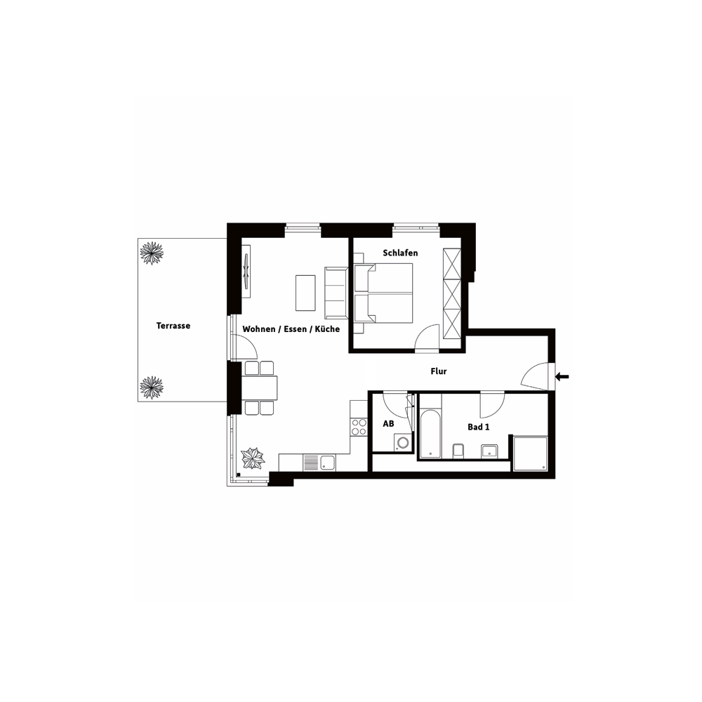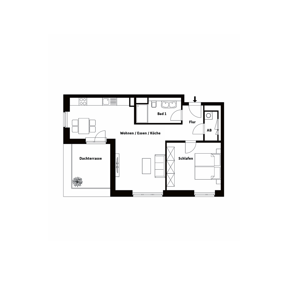2 Zimmer, ca. 66,40 m² Wohnfläche