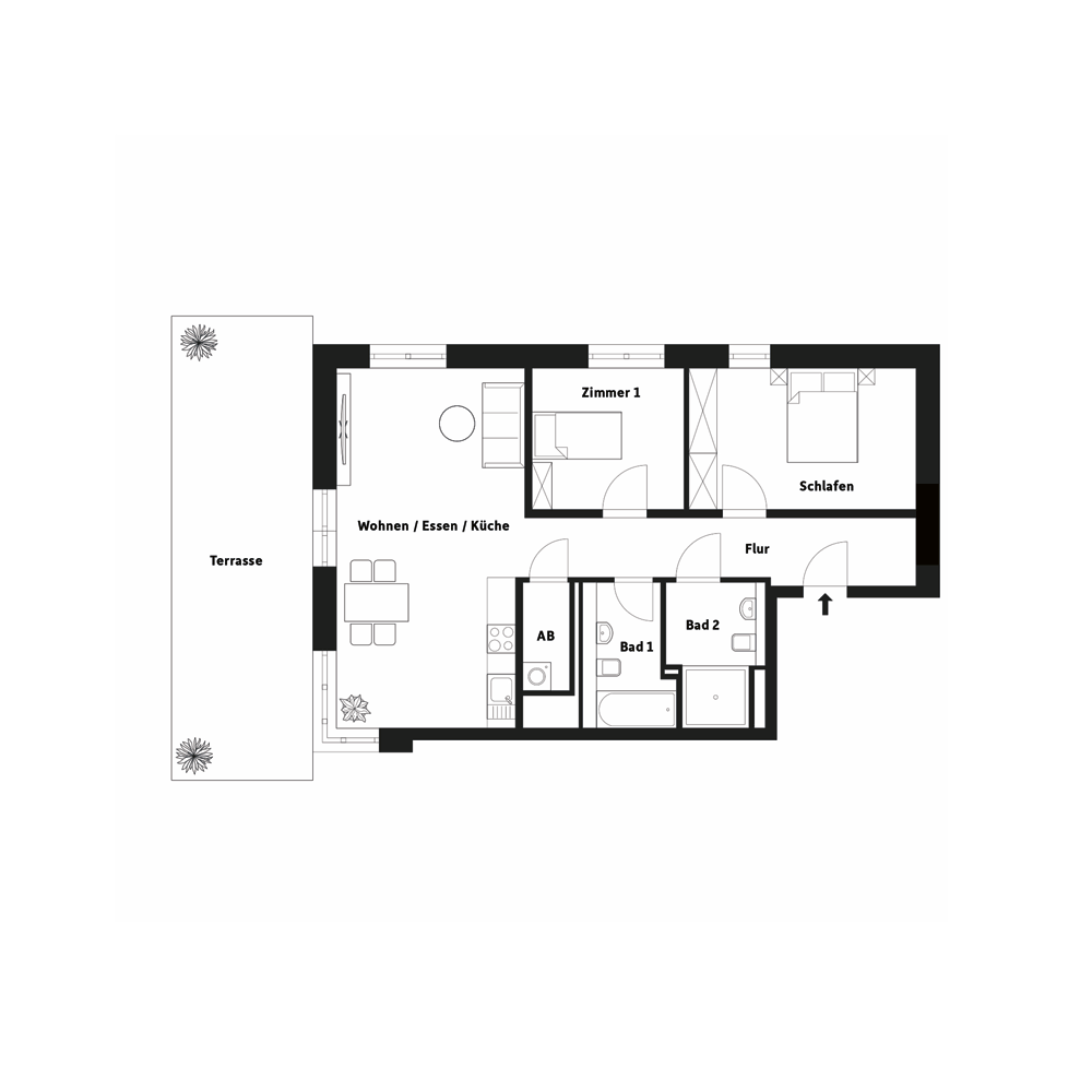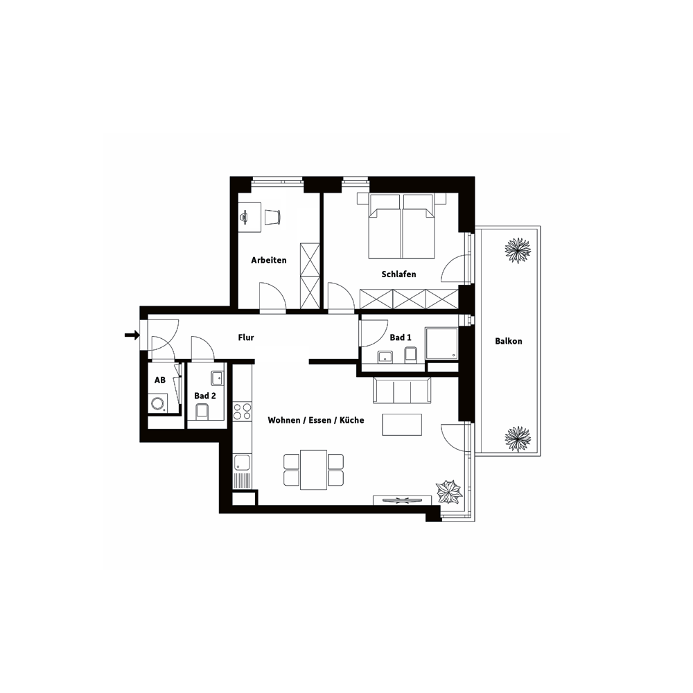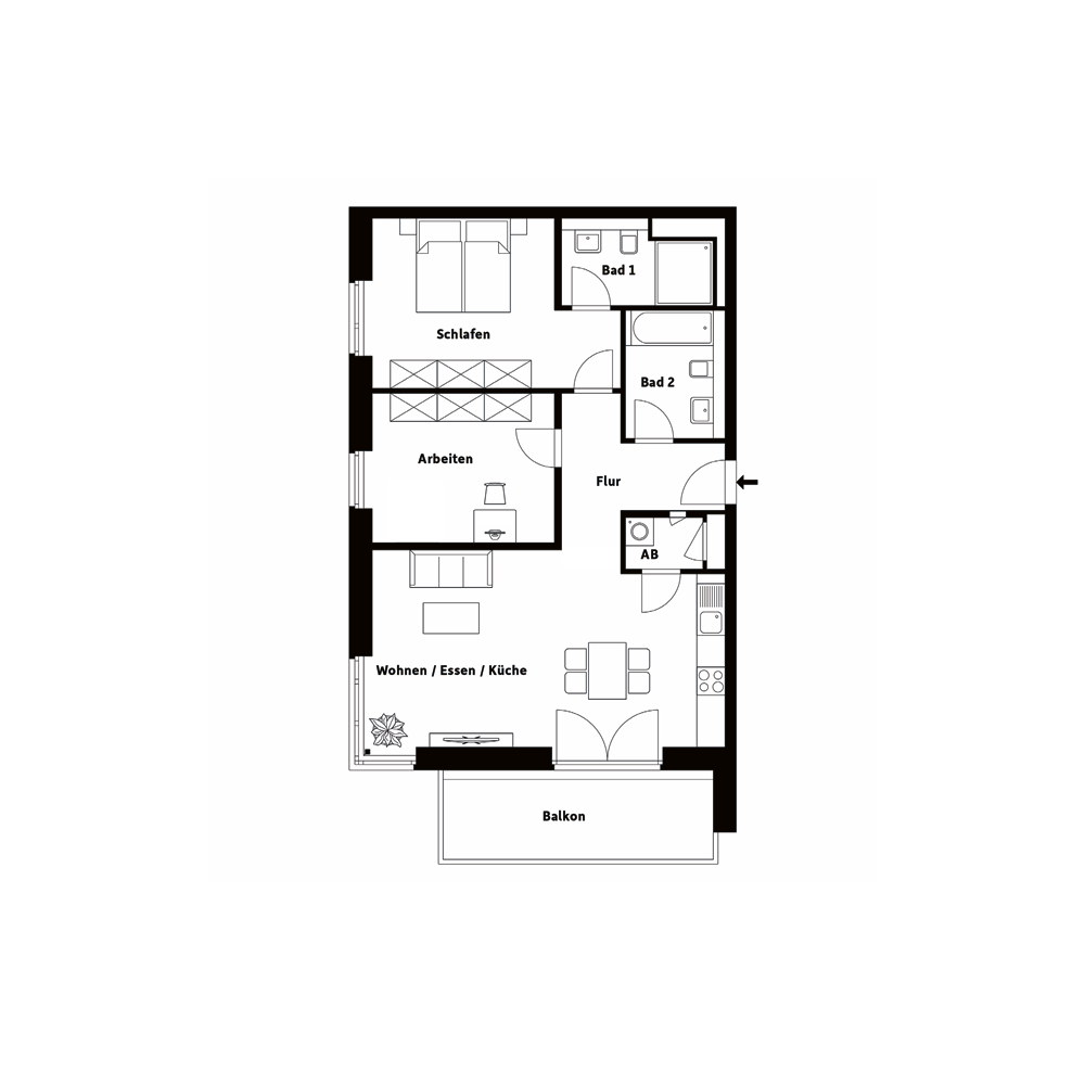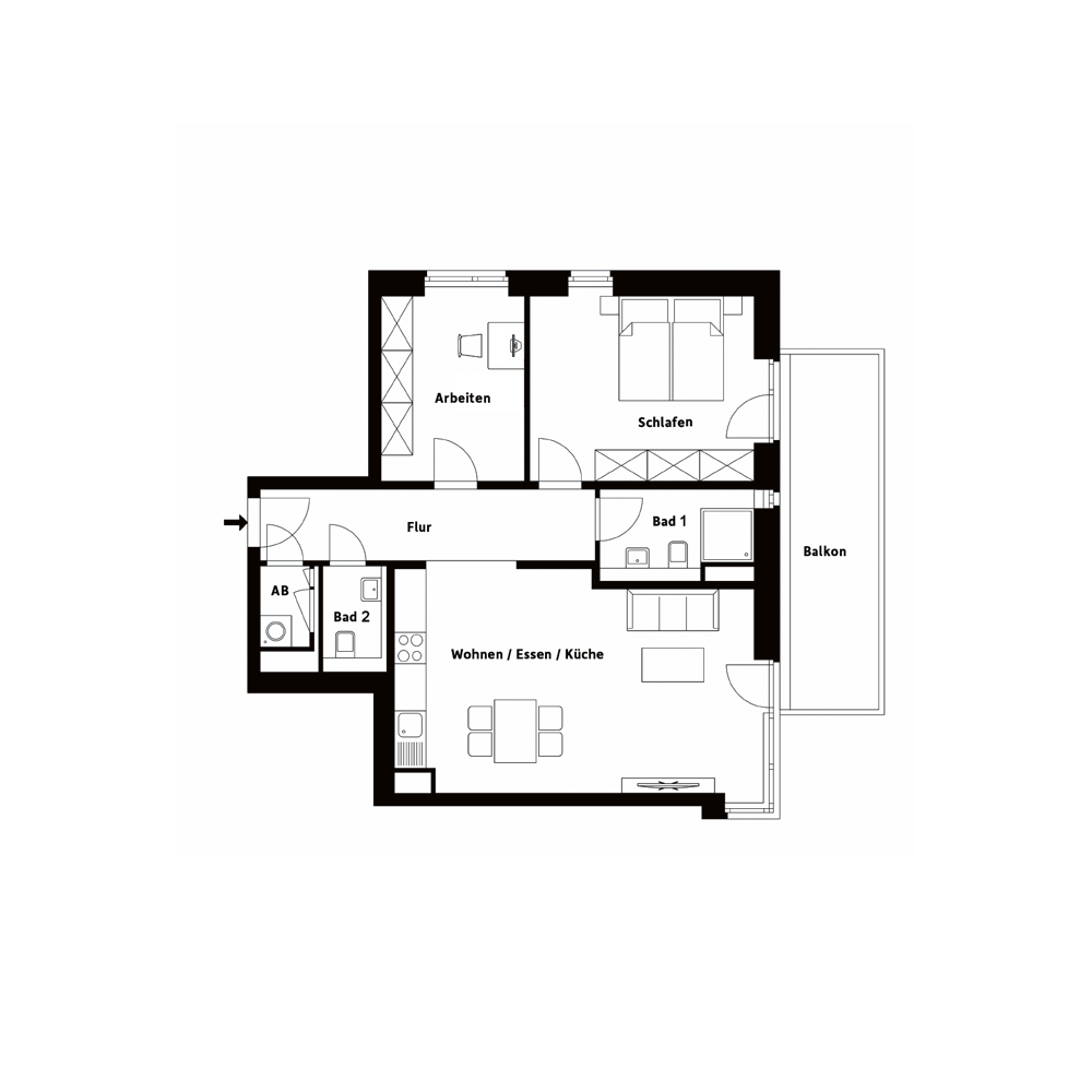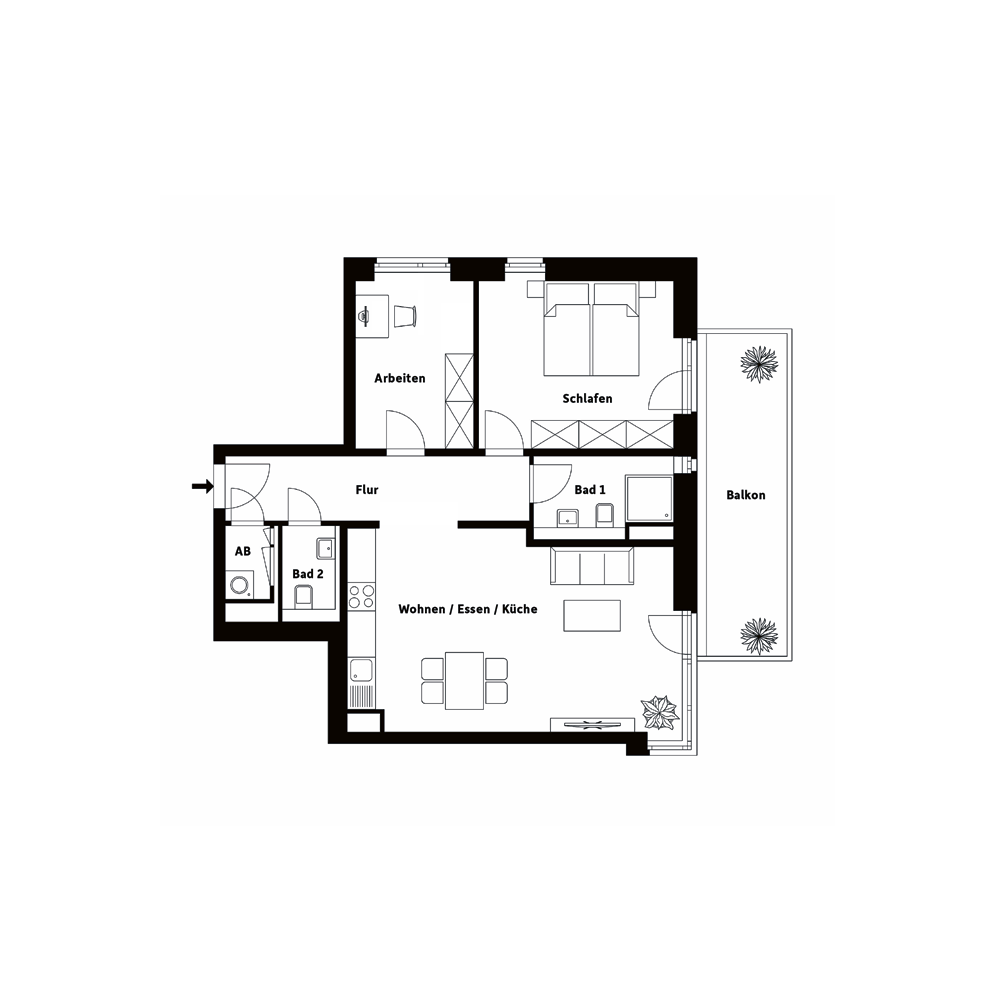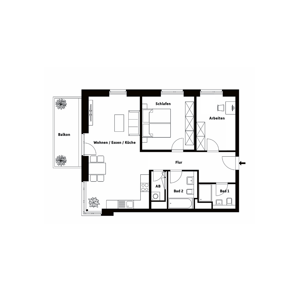3 Zimmer, ca. 77,75 m² Wohnfläche