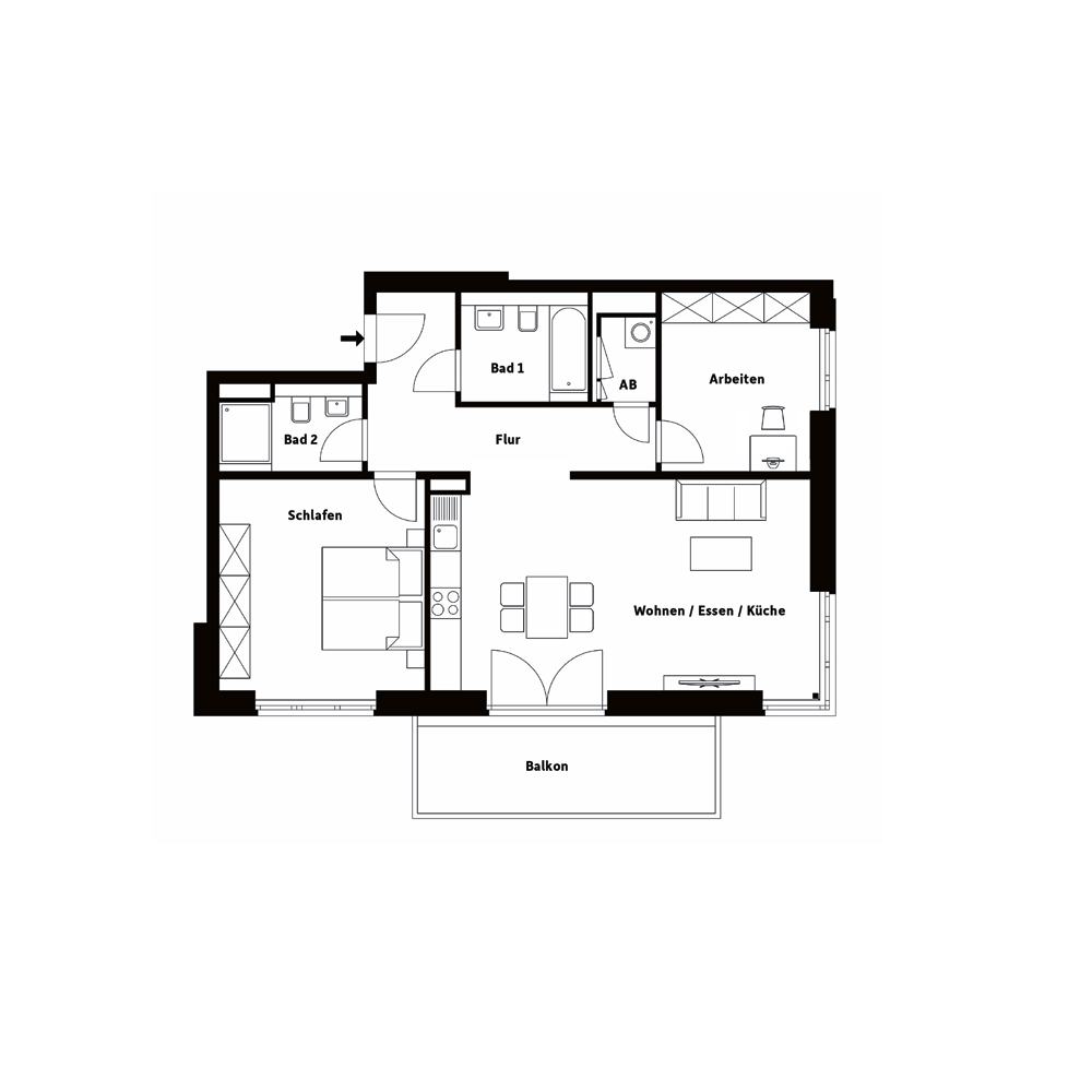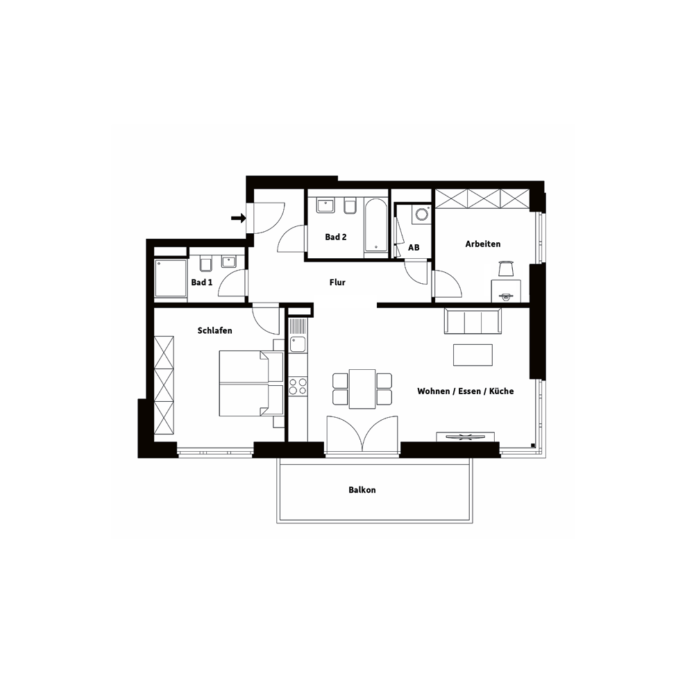 2 Zimmer, ca. 72,04 m² Wohnfläche