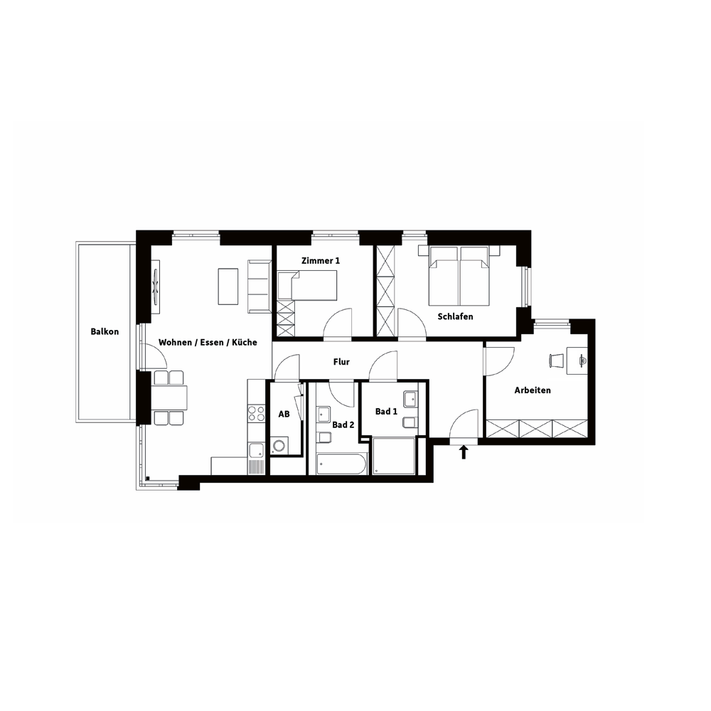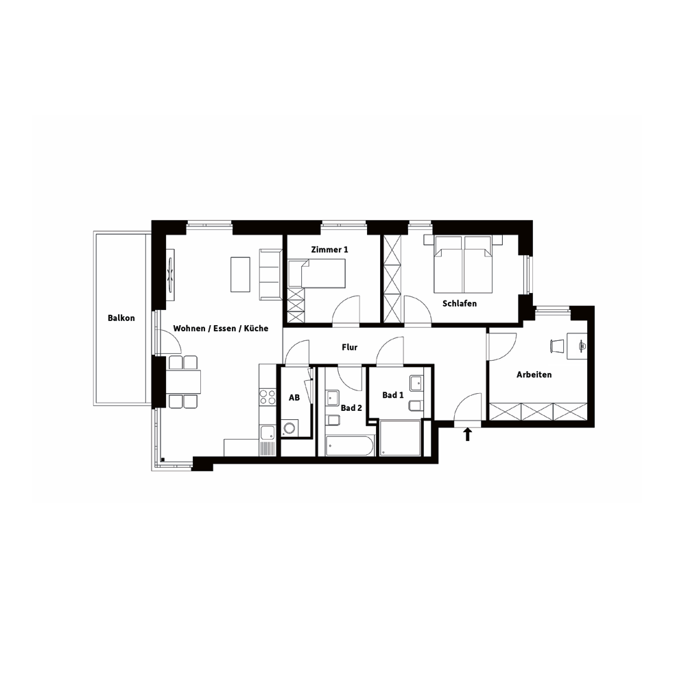 4 Zimmer, ca. 99,79 m² Wohnfläche