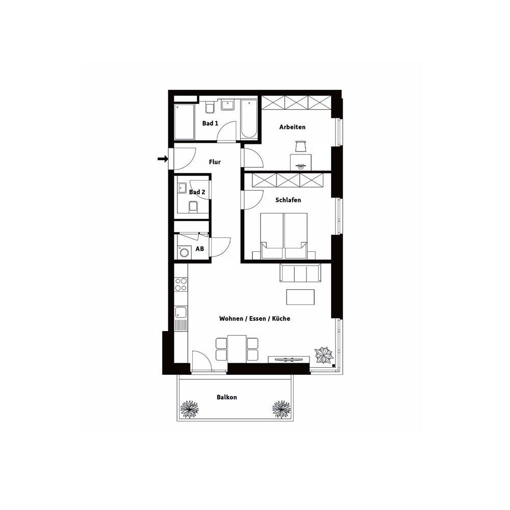 3 Zimmer, ca. 86,68 m² Wohnfläche