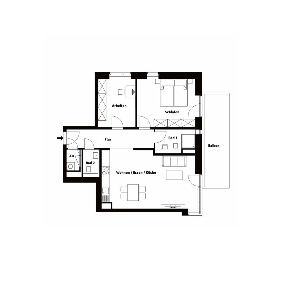 3 Zimmer, ca. 83,79 m² Wohnfläche