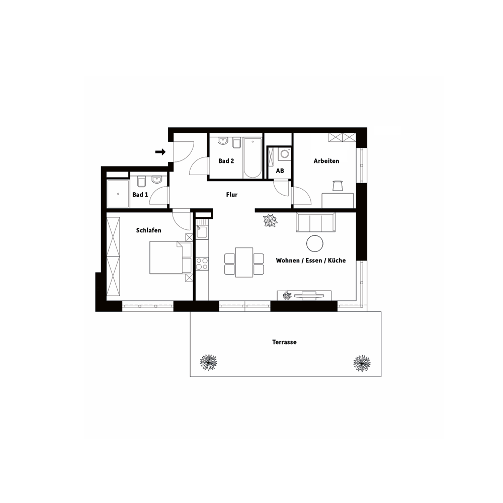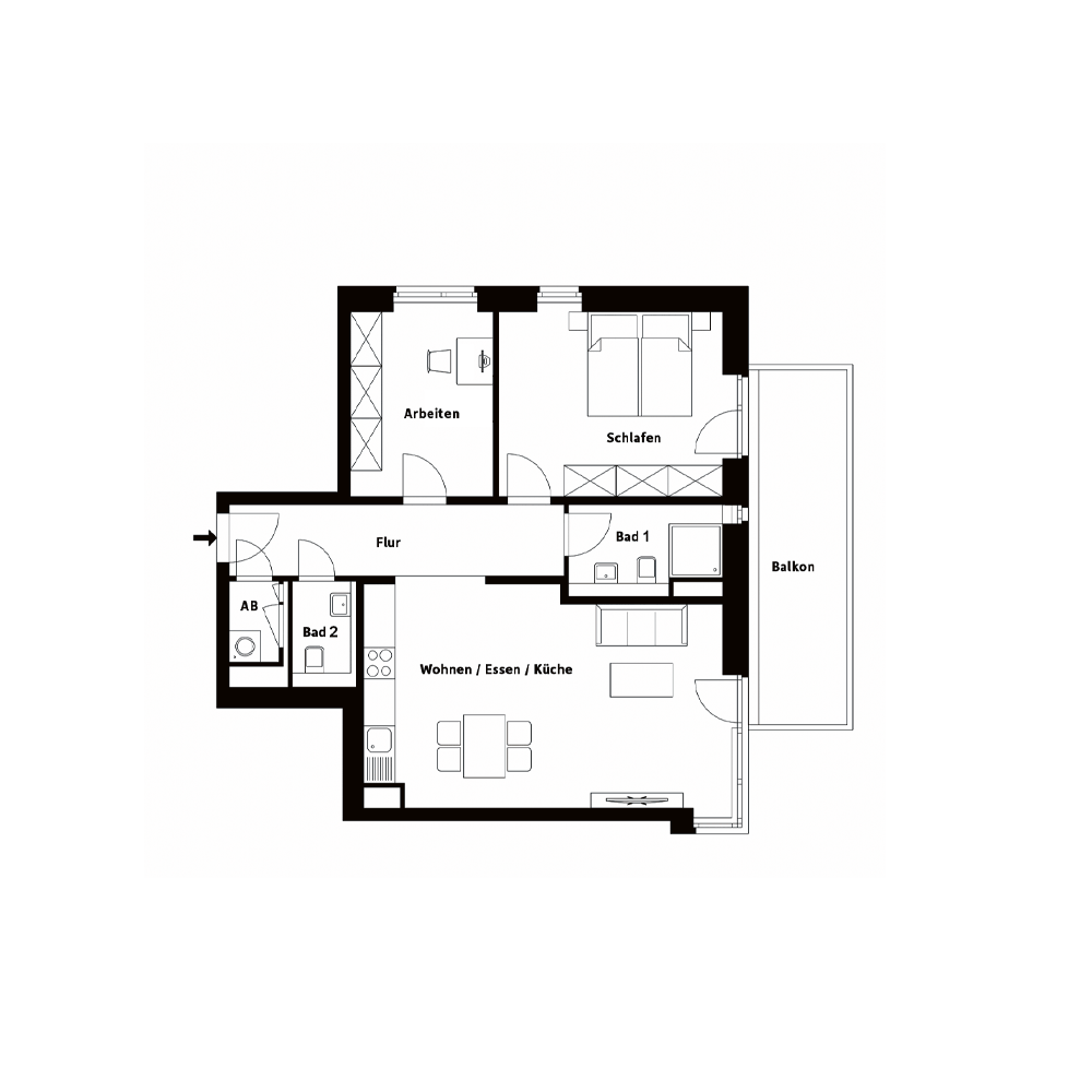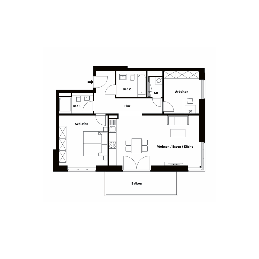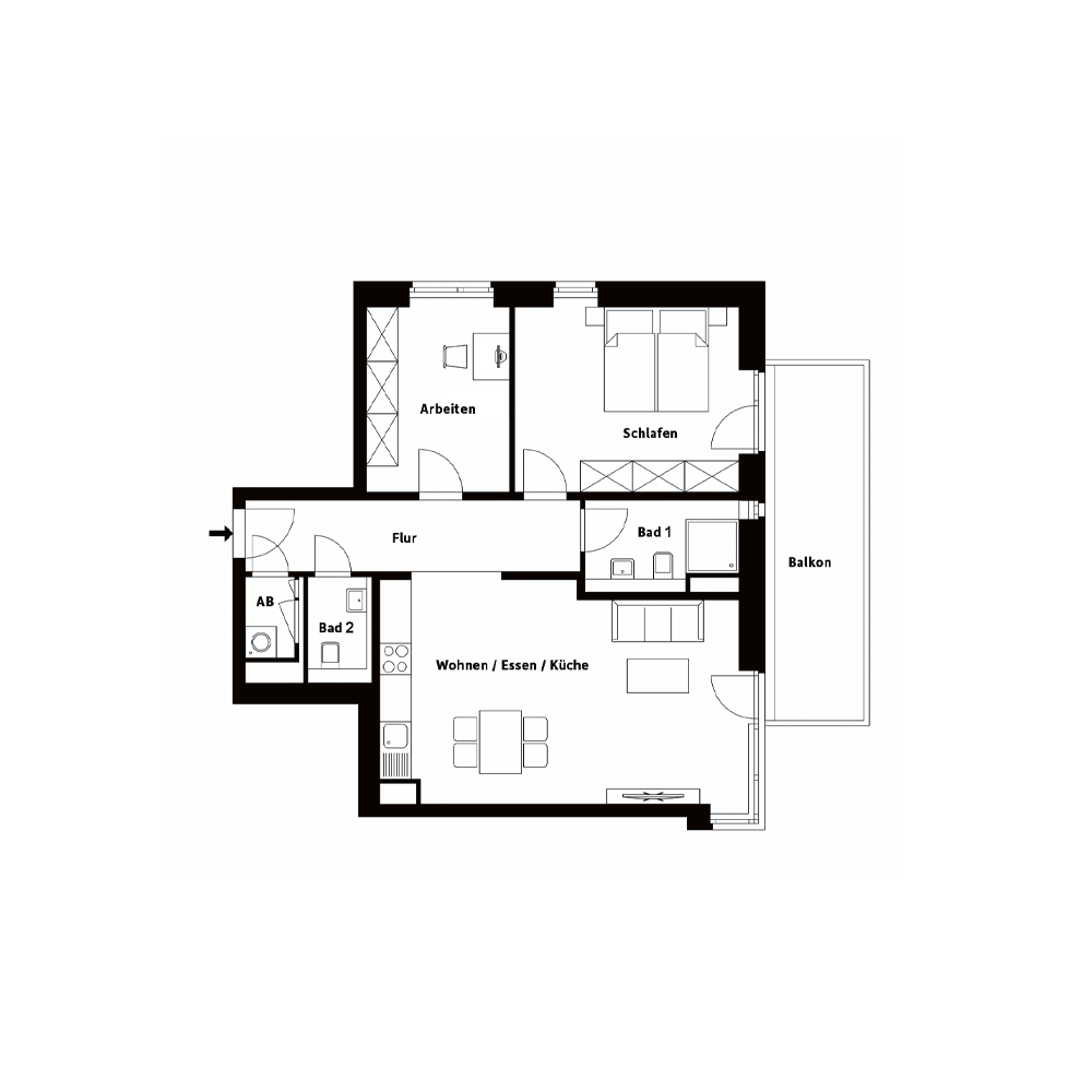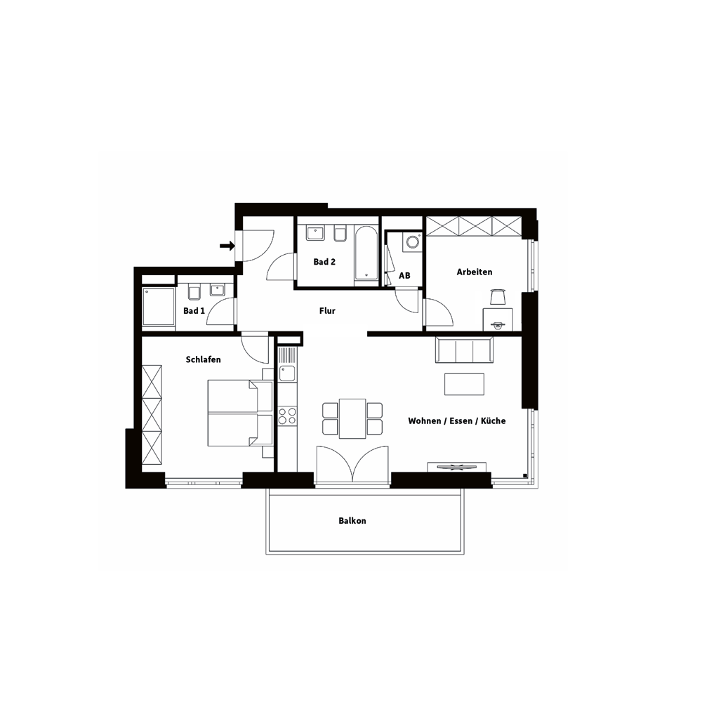 2 Zimmer, ca. 72,04 m² Wohnfläche