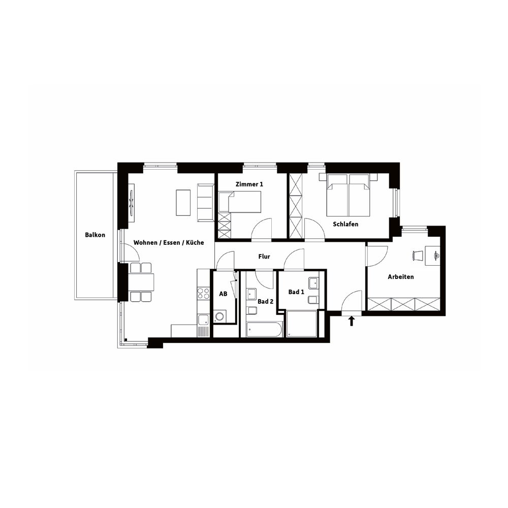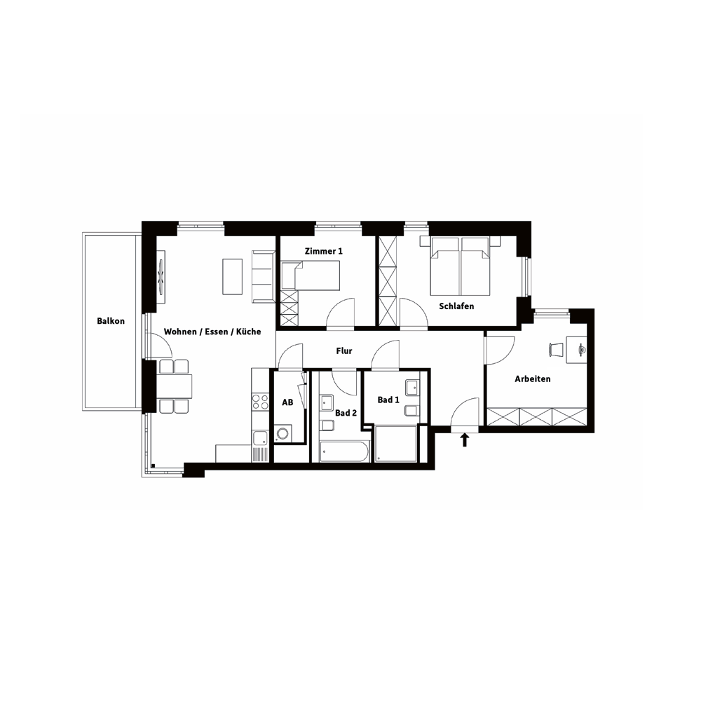 4 Zimmer, ca. 99,79 m² Wohnfläche