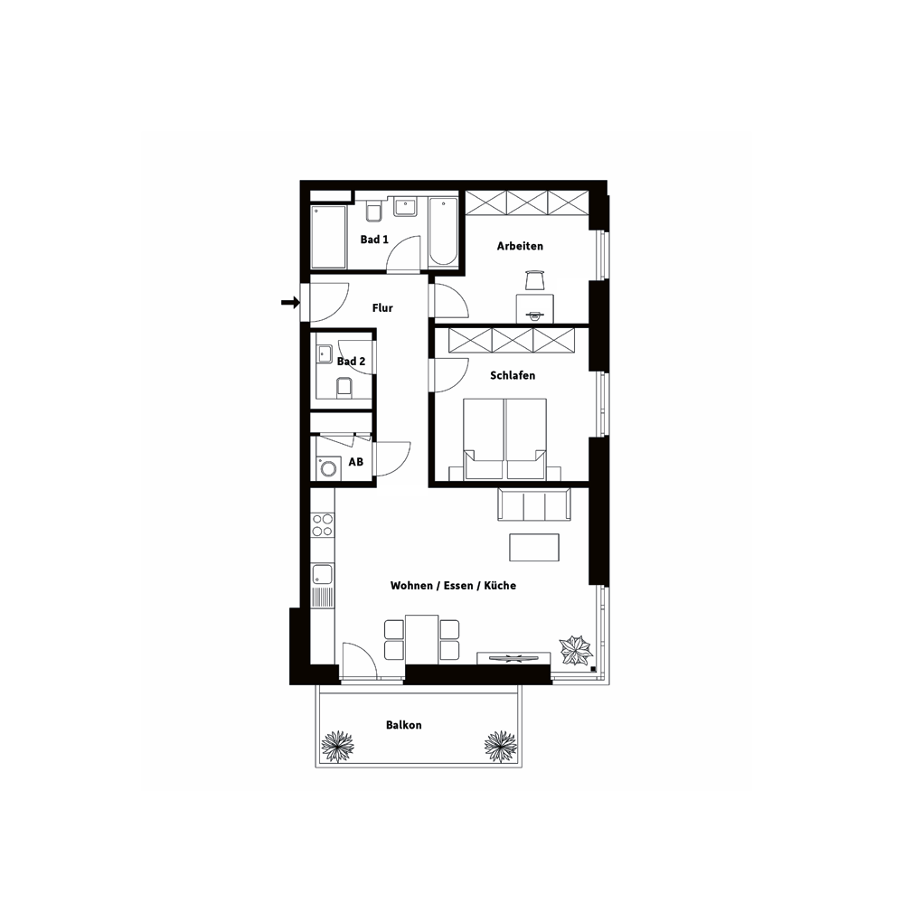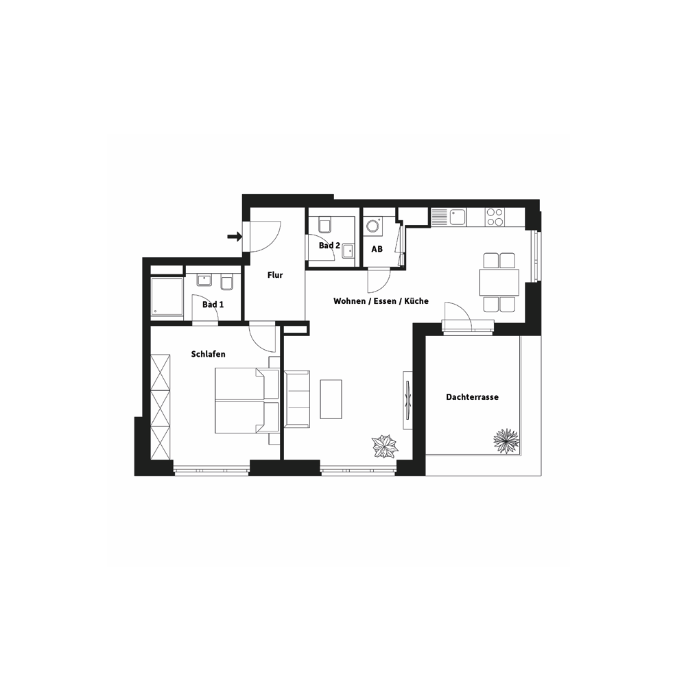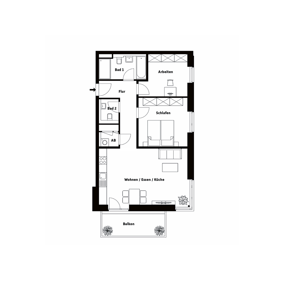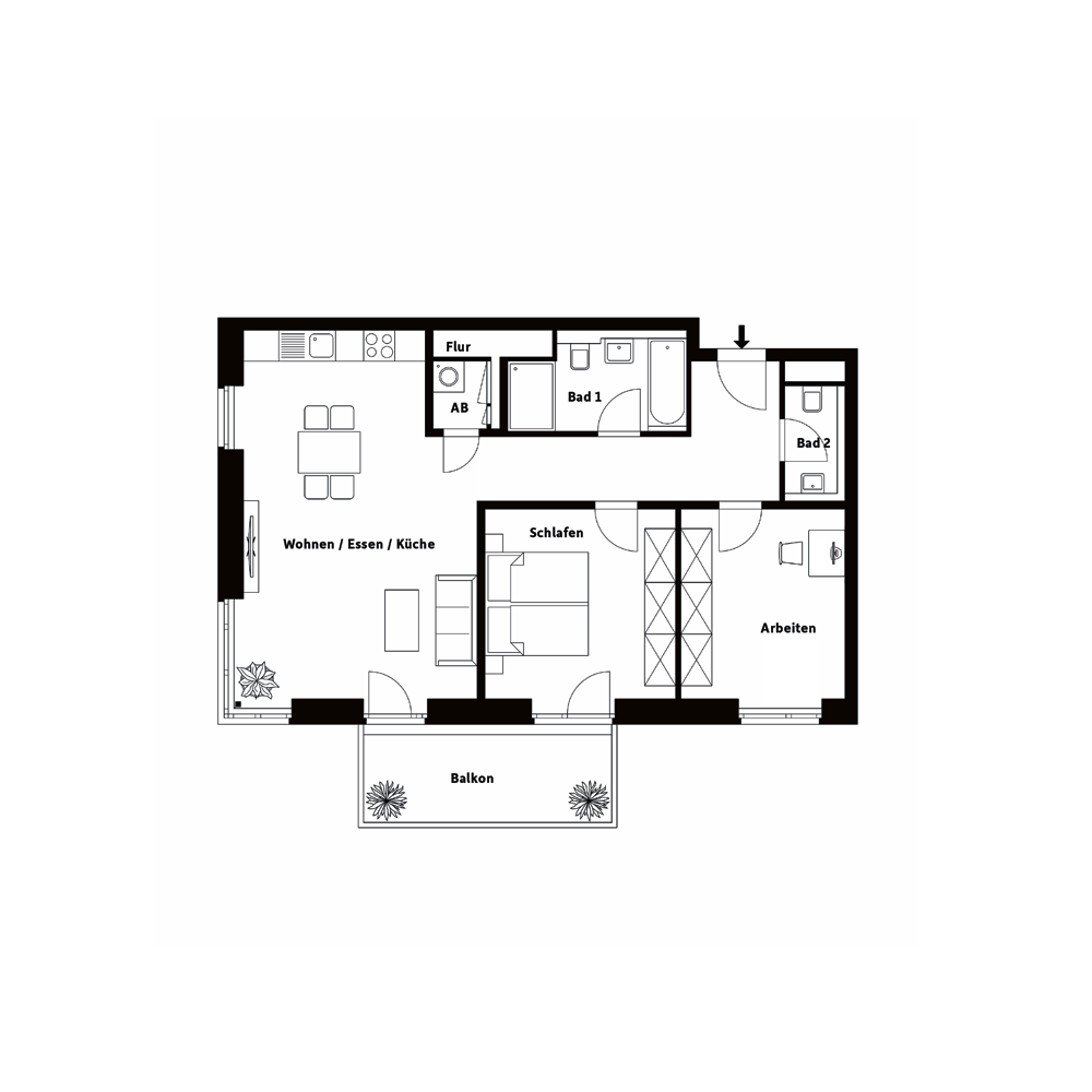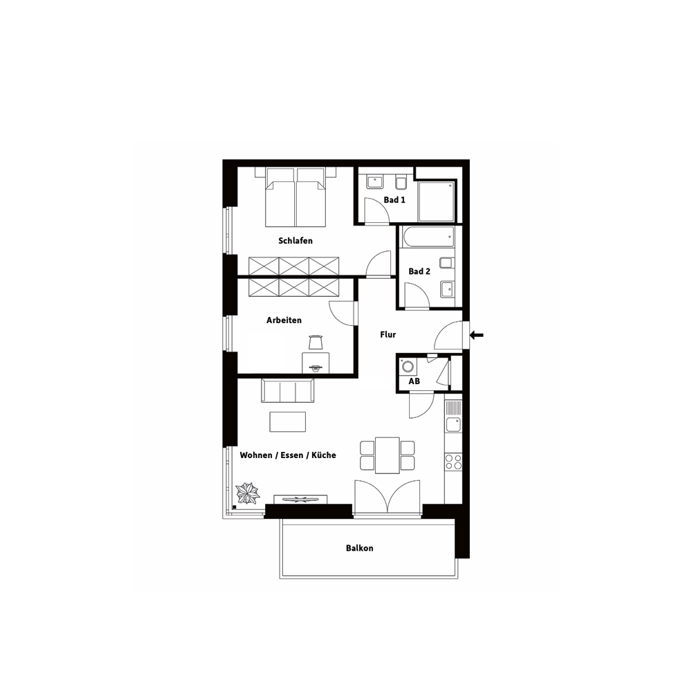 2 Zimmer, ca. 66,40 m² Wohnfläche