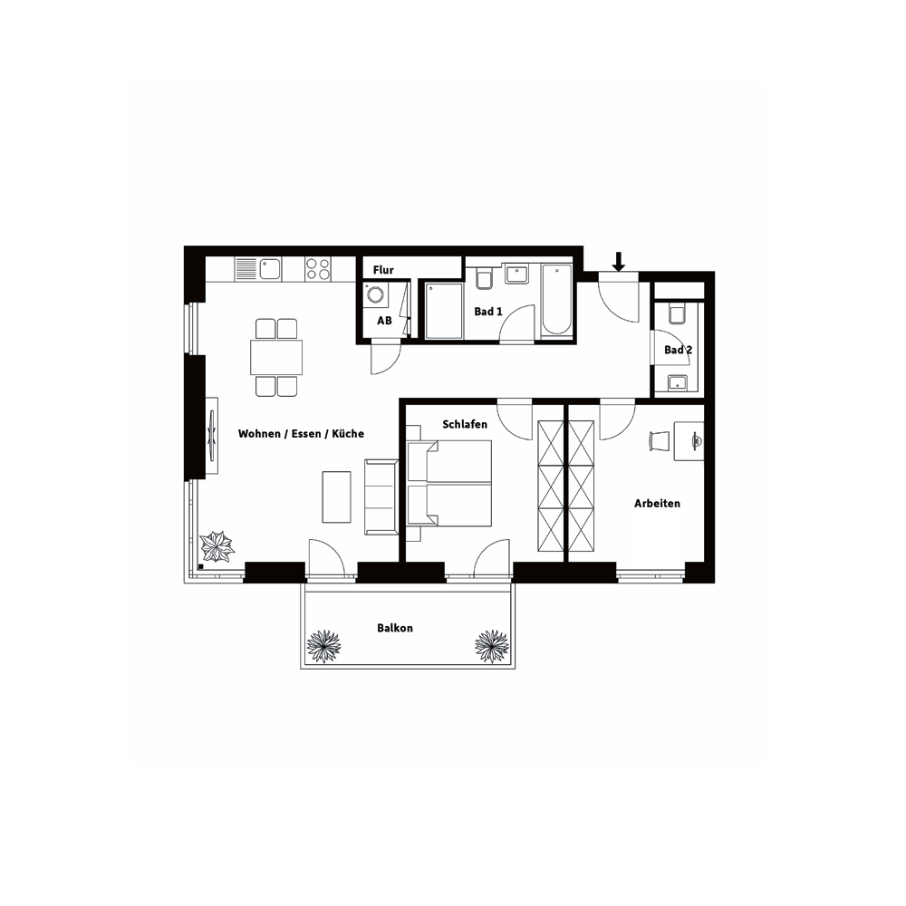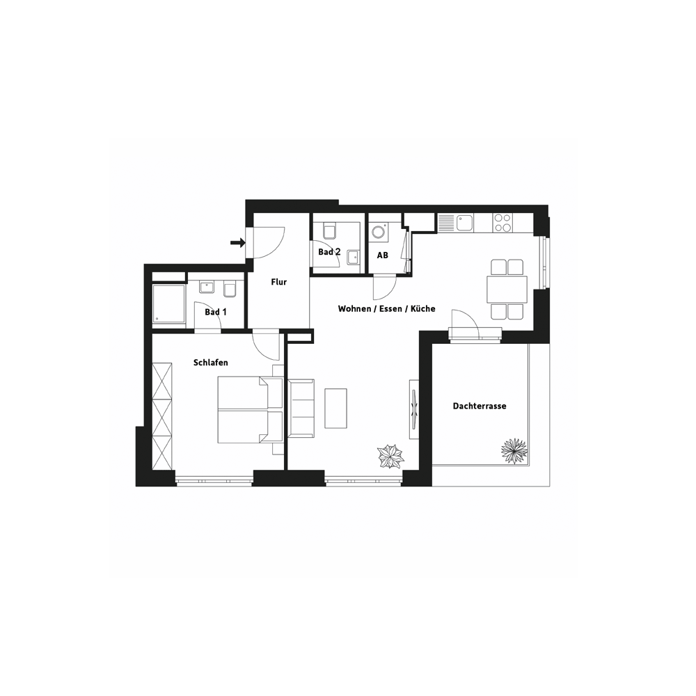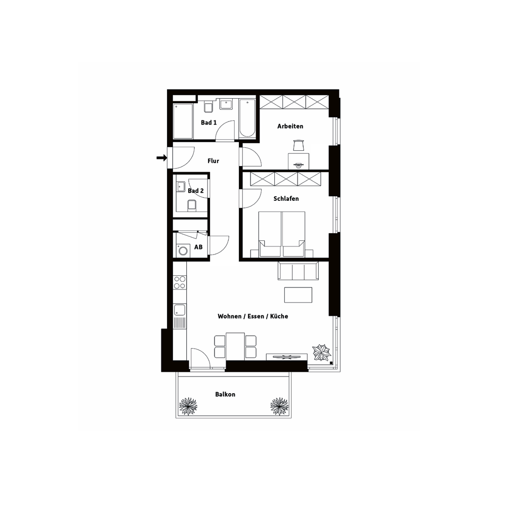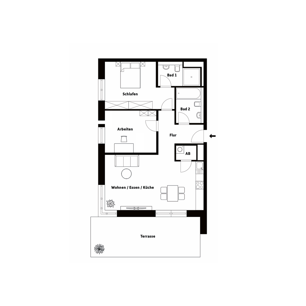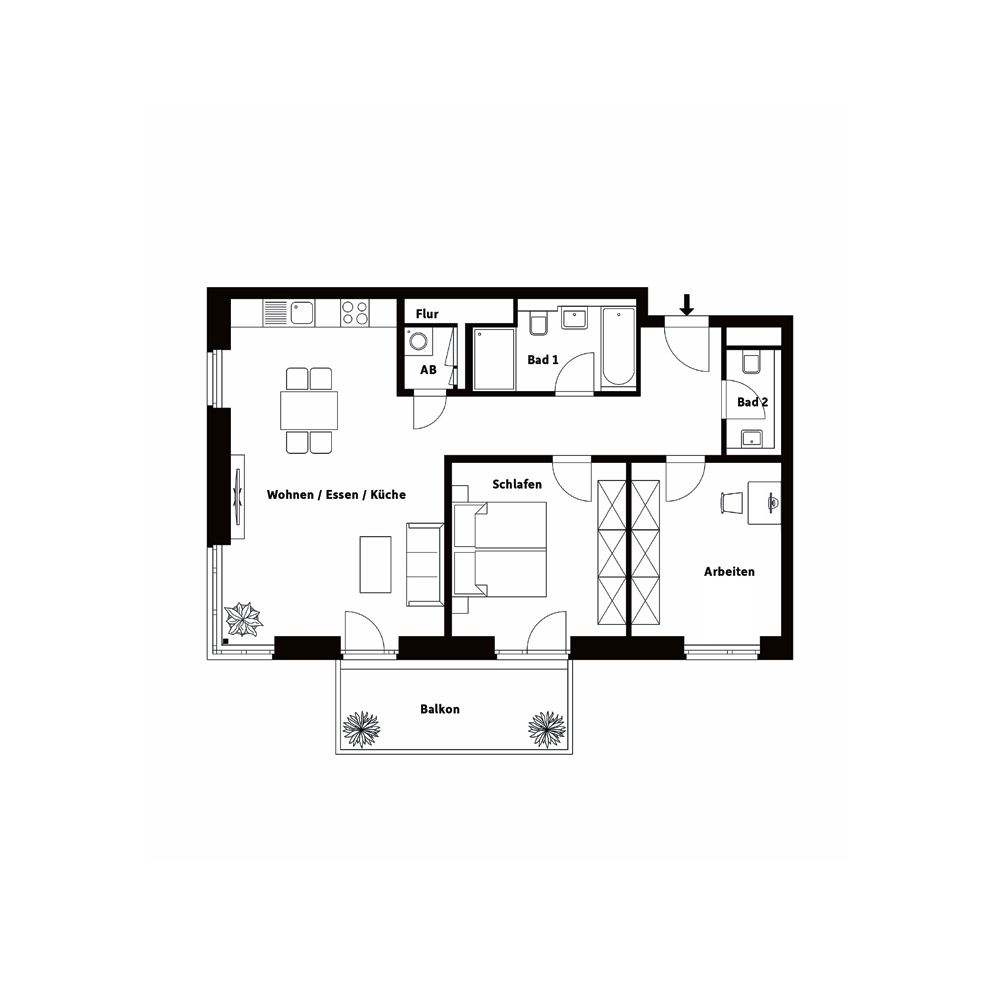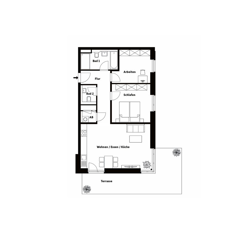 2 Zimmer, ca. 66,40 m² Wohnfläche