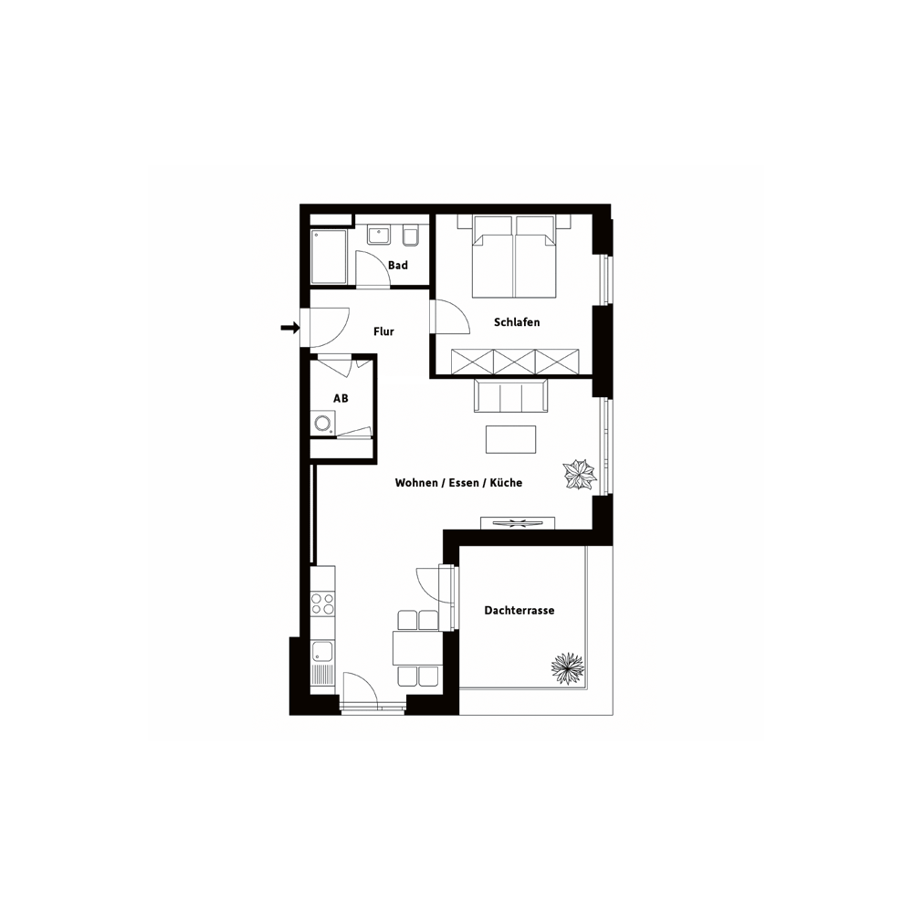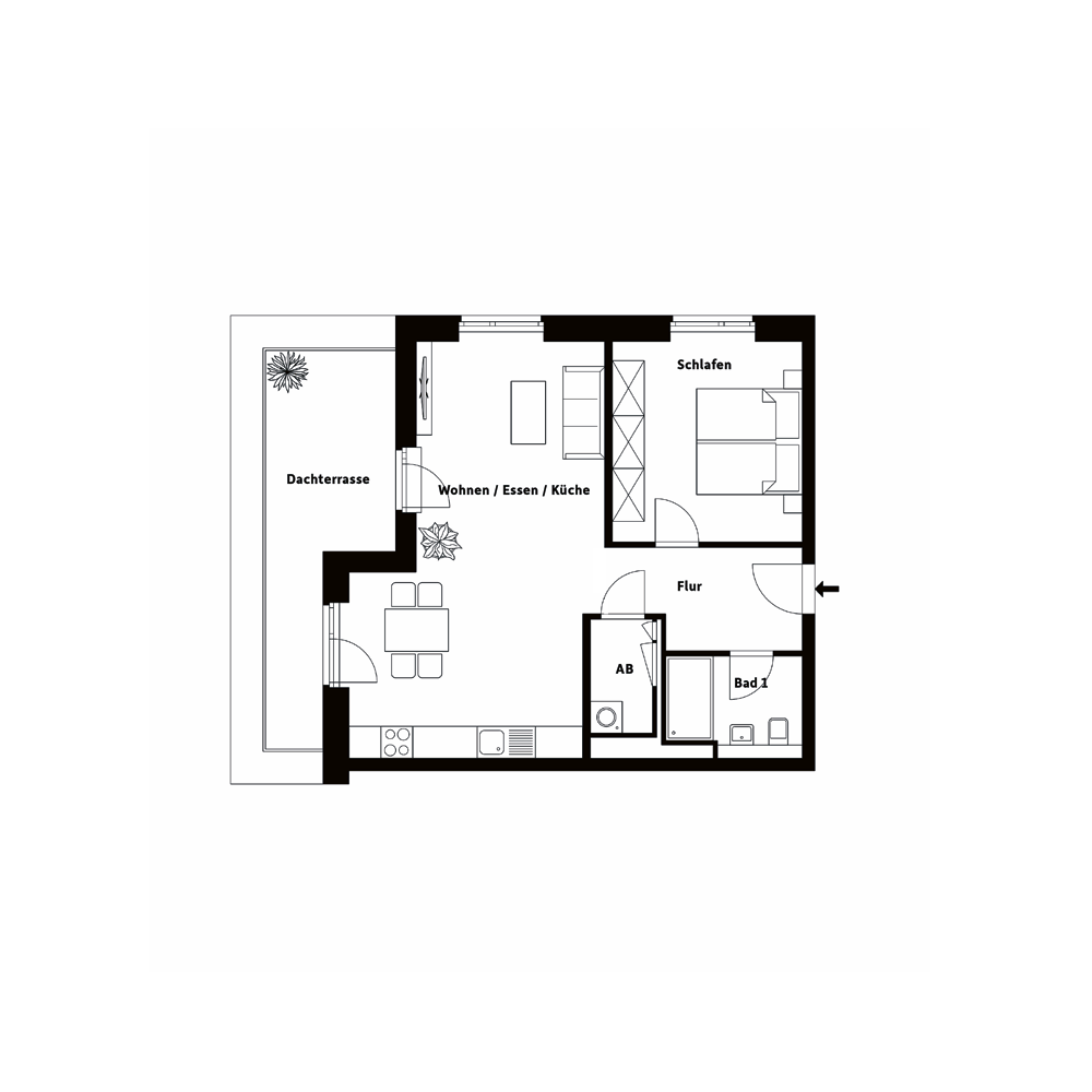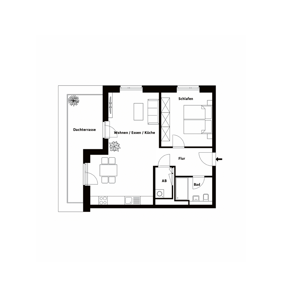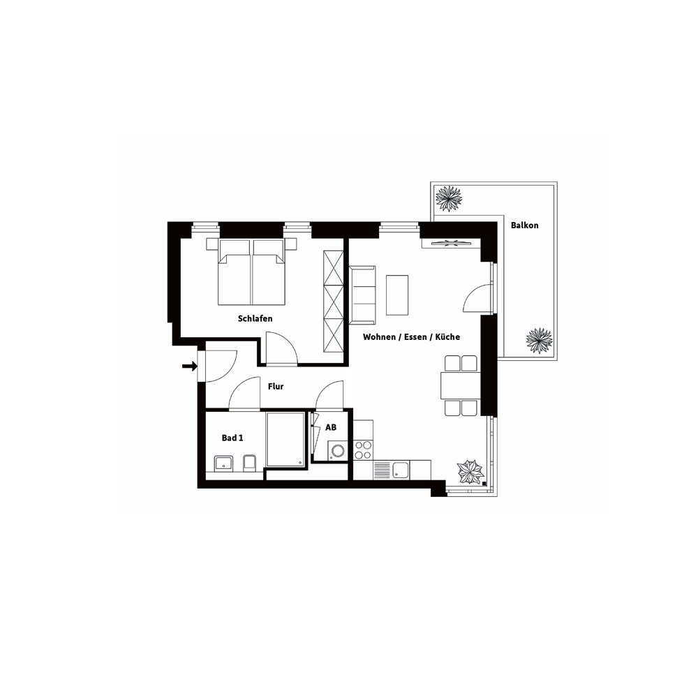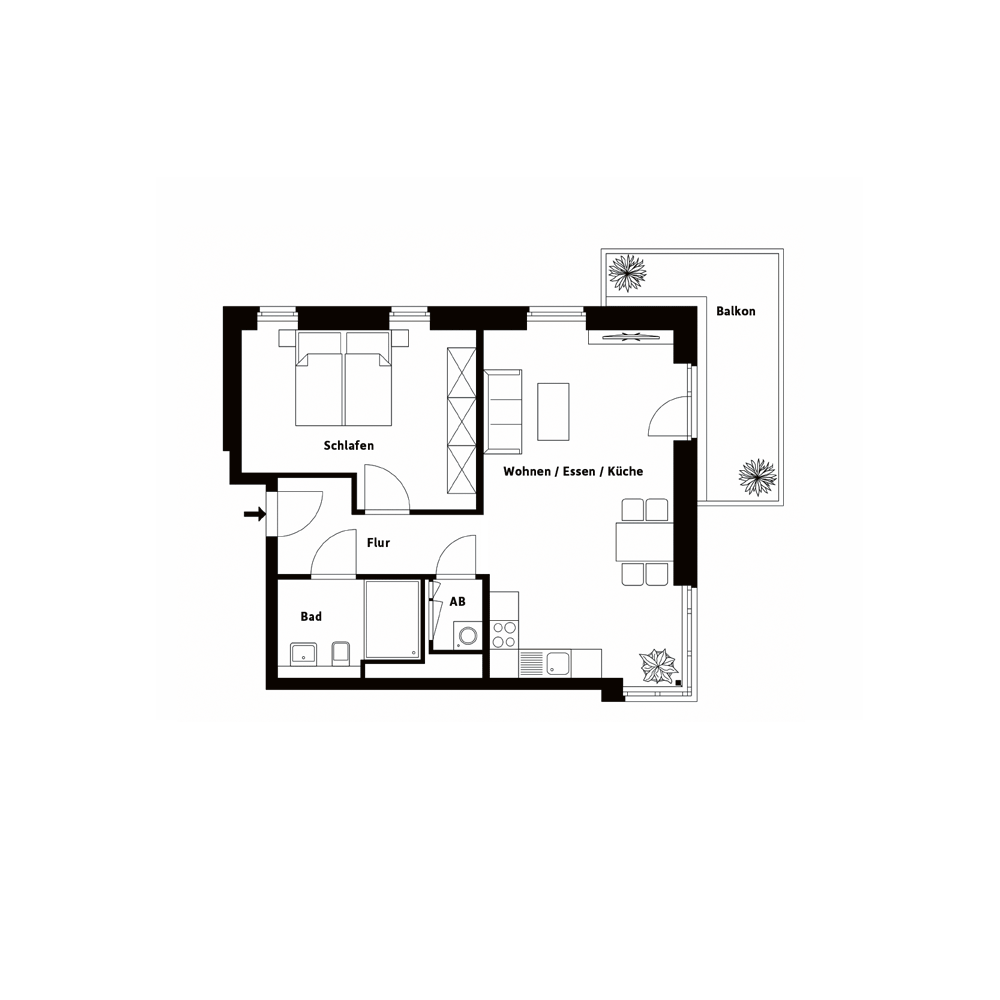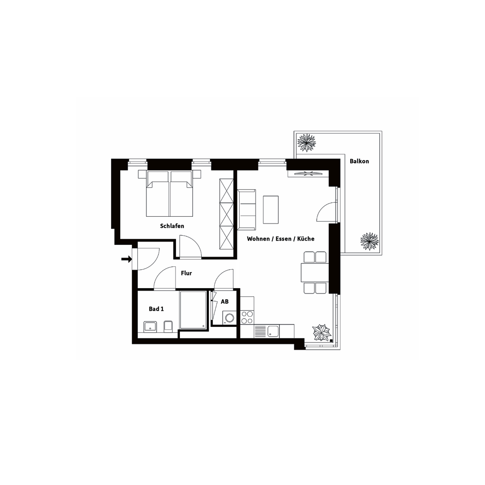 2 Zimmer, ca. 66,40 m² Wohnfläche