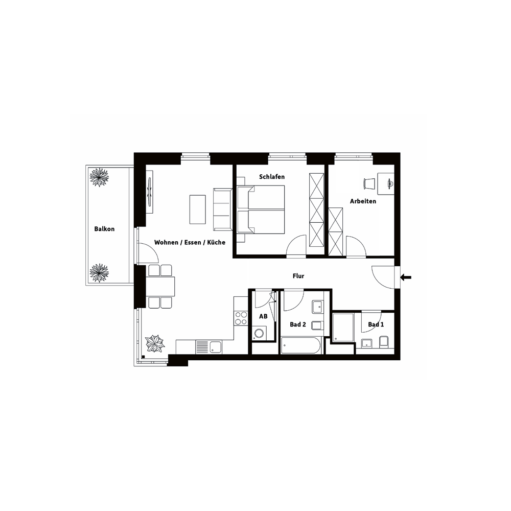 3 Zimmer, ca. 77,75 m² Wohnfläche