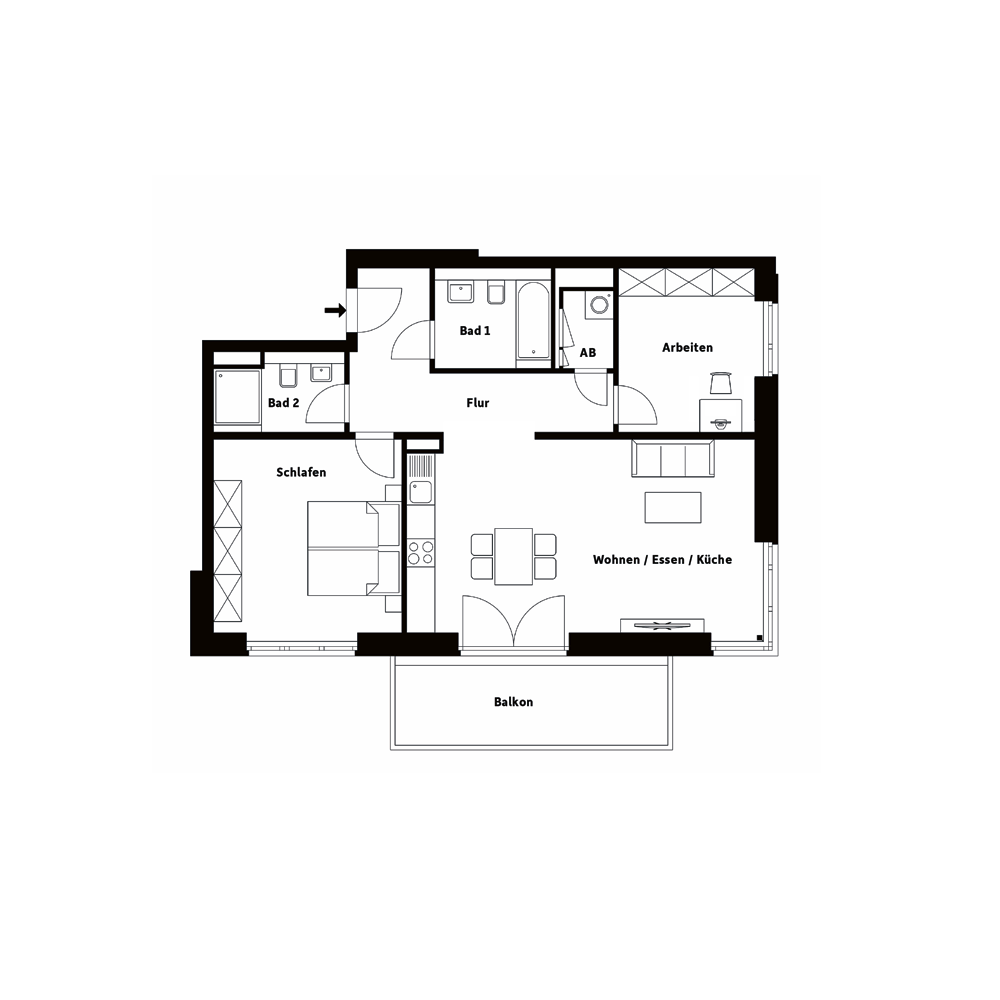 2 Zimmer, ca. 72,19 m² Wohnfläche